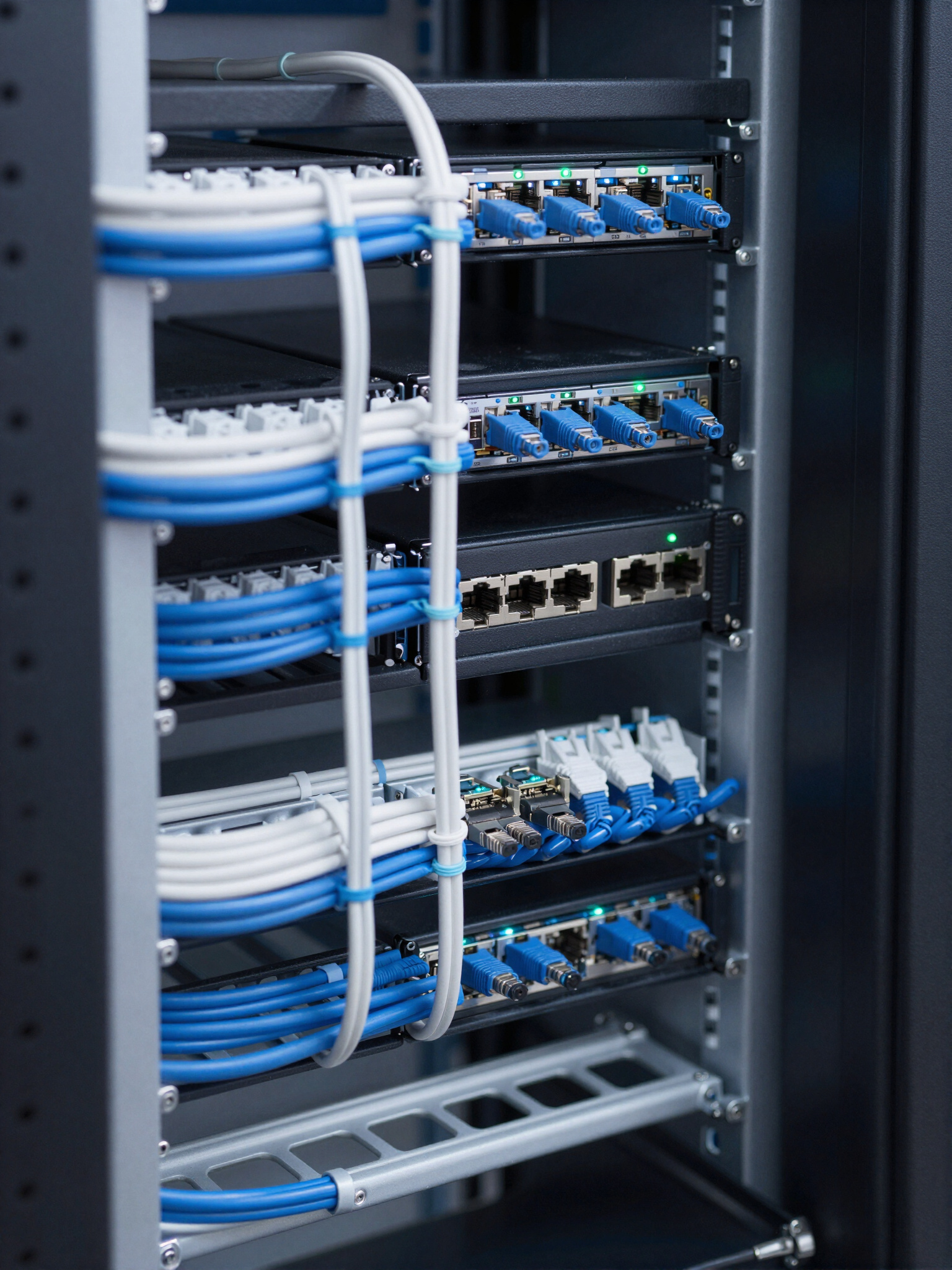 High-performance data environments built on precision fiber optics and copper backbone systems to support modern enterprise communications.